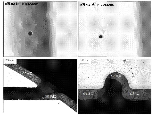 渦輪葉片涂敷熱障涂層過(guò)程中,涂層不可避免地沉積在氣膜孔內(nèi)表面,導(dǎo)致氣膜孔孔徑減�。ㄈ鐖D4所示)。由于氣膜孔孔徑大�。M截面積)直接決定了冷卻介質(zhì)的流通量,影響渦輪葉片氣膜冷卻降溫效果。統(tǒng)計(jì)氣膜孔縮孔規(guī)律,通過(guò)放大氣膜孔孔徑方法會(huì)影響氣膜孔形狀和尺寸,可能會(huì)影響氣流方向,進(jìn)而影響氣膜冷卻效果。