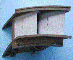 涂層厚度分布與渦輪葉片的服役工況息息相關(guān)�?紤]到渦輪葉片氣動(dòng)性能、內(nèi)外部換熱及強(qiáng)度等因素,某些渦輪葉片表面需局部涂敷熱障涂層(如圖2所示),需設(shè)計(jì)制造專用的局部涂敷夾具。對(duì)于某些葉片其表面需全部涂敷熱障涂層,需采用公轉(zhuǎn)結(jié)合自轉(zhuǎn)及專用涂敷夾具以實(shí)現(xiàn)涂層厚度的相對(duì)均勻分布(如圖3所示)。