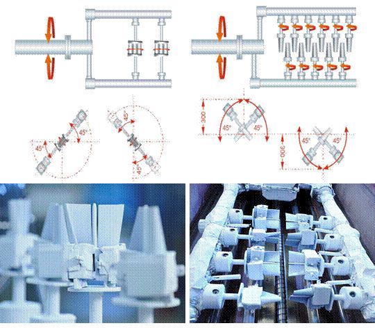 圖3  全部熱障涂層葉片運(yùn)動(dòng)方式及專用涂敷夾具
